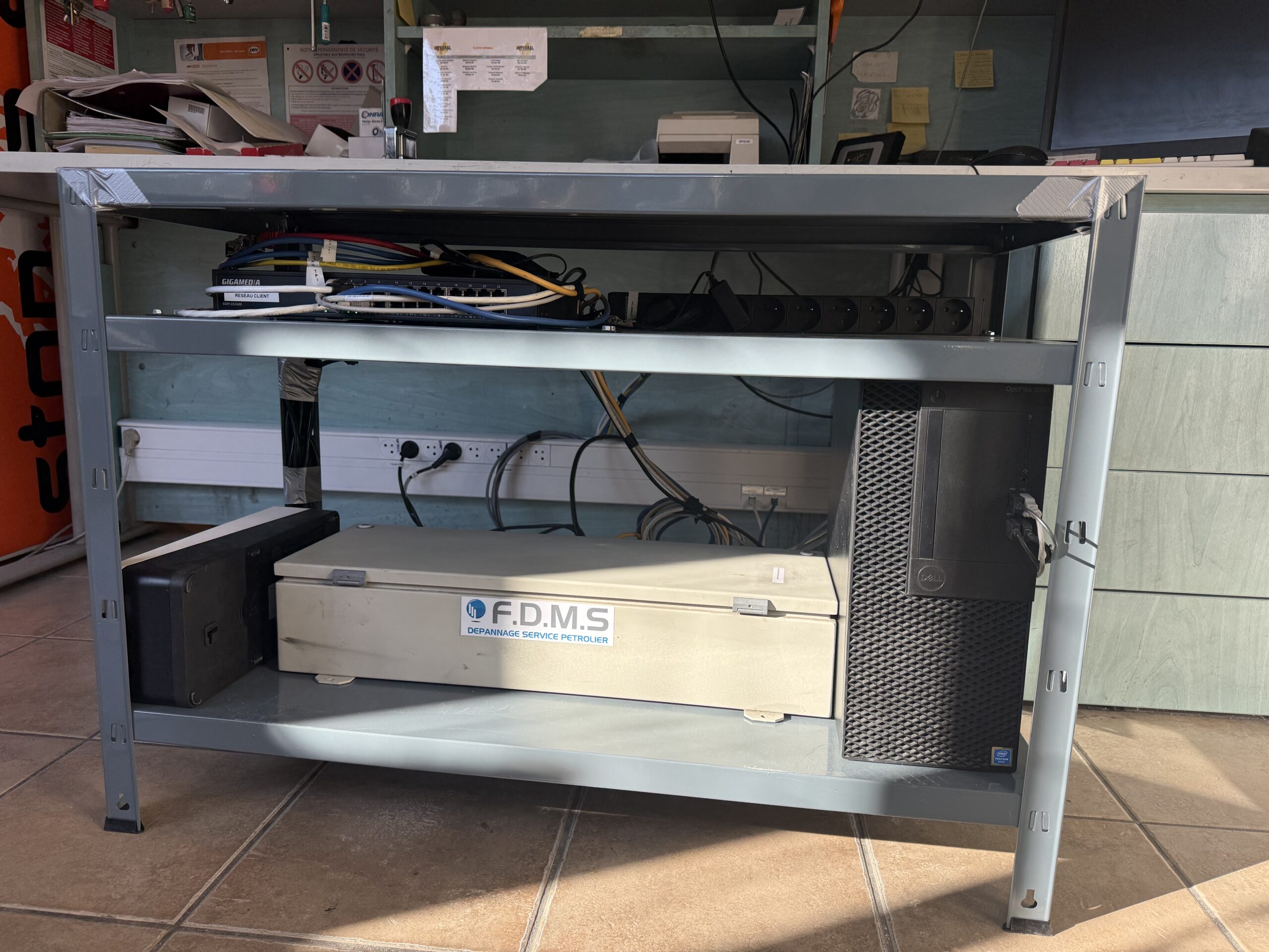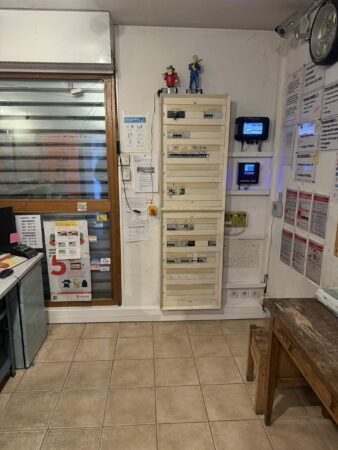 Réduire les risques d’arrachement, incendie et chute. Améliorer l’accessibilité maintenance. Mettre la boutique en conformité et fiabiliser les équipements (TPV, badges, alarme, vidéo, réseau).
